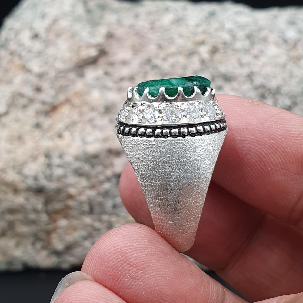 خاتم زمرد هندي مرصع بالموزنايت موديل فتافيت السكر