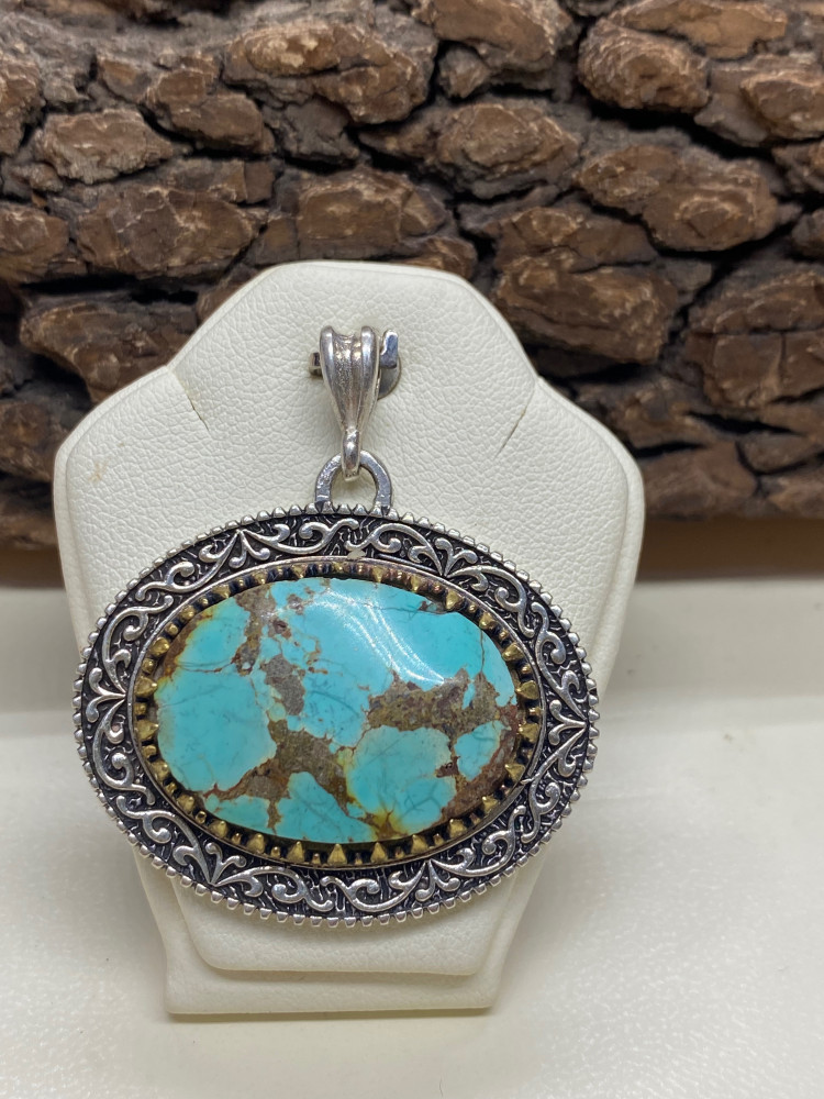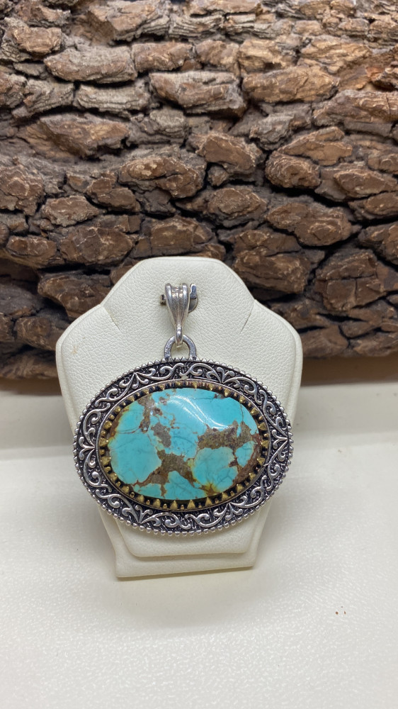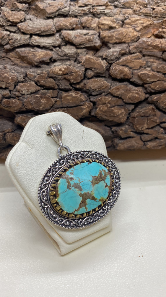 تعليقة فضة حجر فيروز نيشابوري طبيعي نقش فاخر