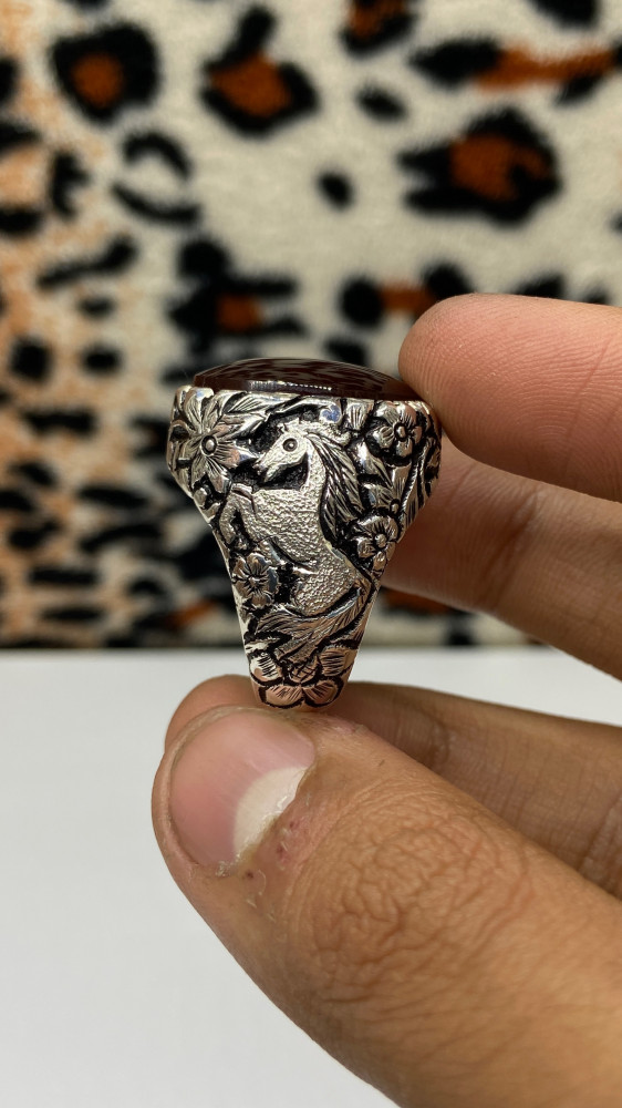 حجر عقيق يماني انسي مزعفر صياغه الخيل الرشيق