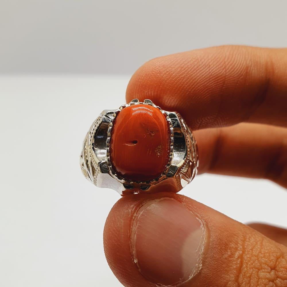 خاتم مرجان تونسي طبيعي صياغه قلم زني الشريف