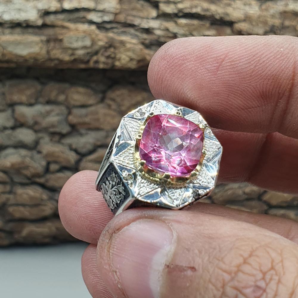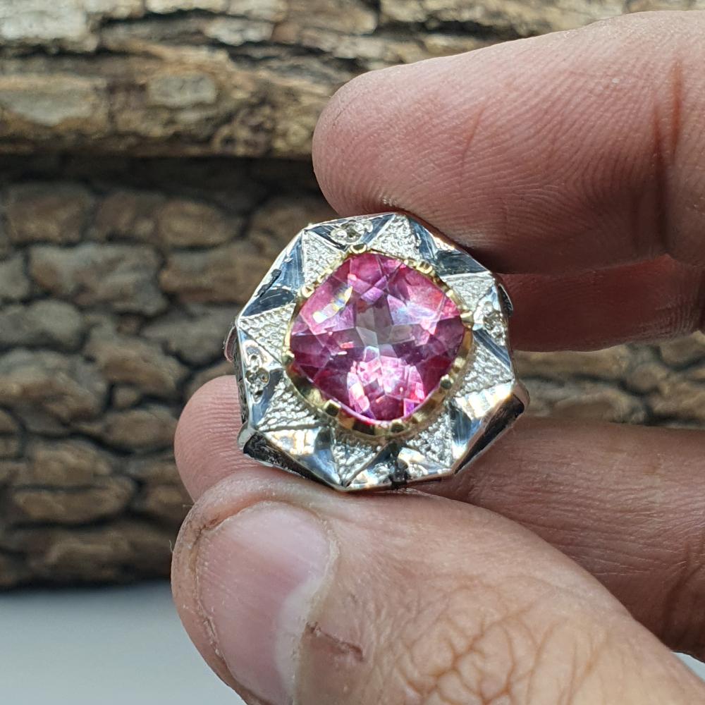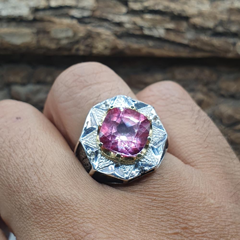 خاتم روبي روز مرصع بالالماس عدد 4 حبات صياغه برتاش