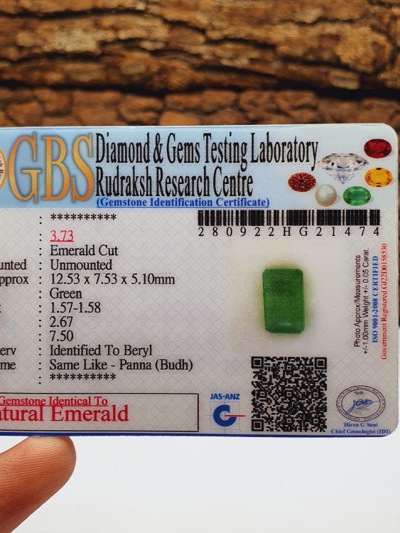 حجر الزمرد الطبيعي بشهاده GBS