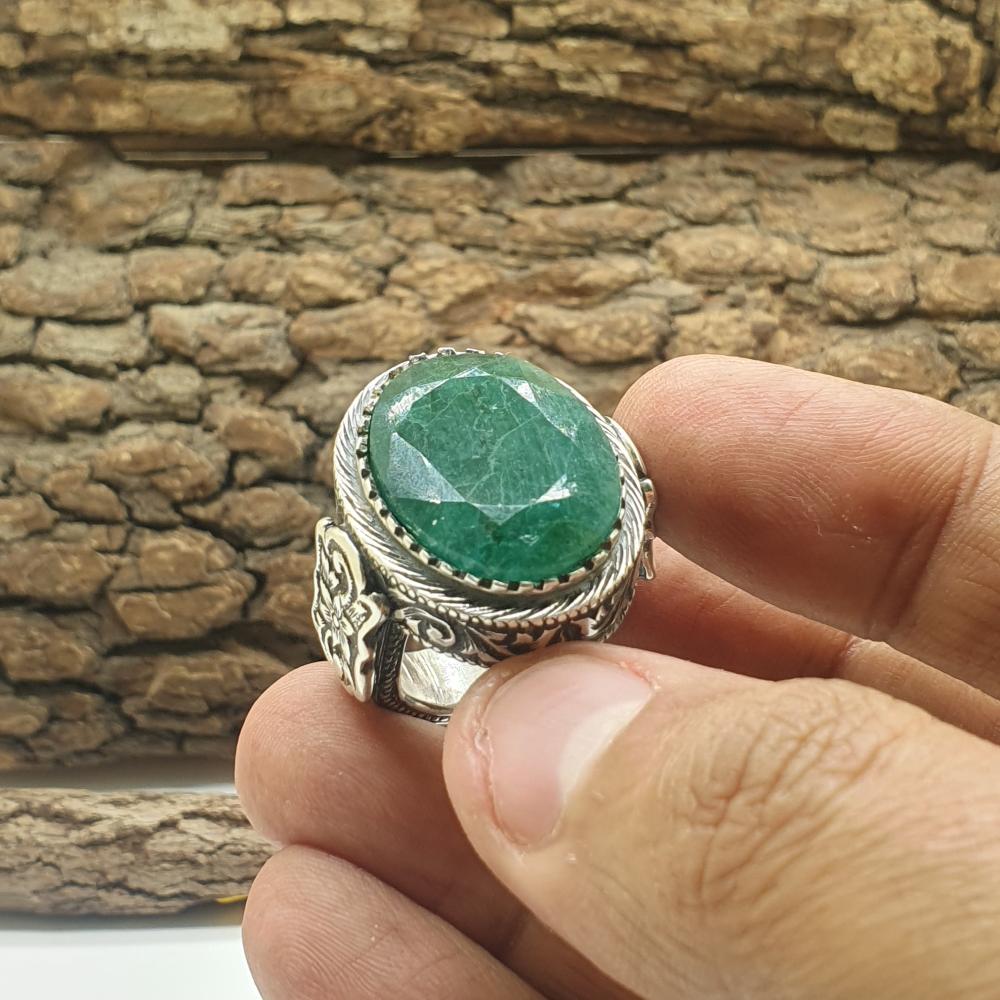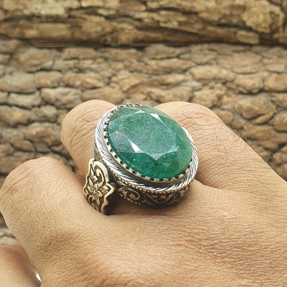 خاتم زمرد افريقي كرستالي صياغه موديل الكنج الفاخر عيار 950