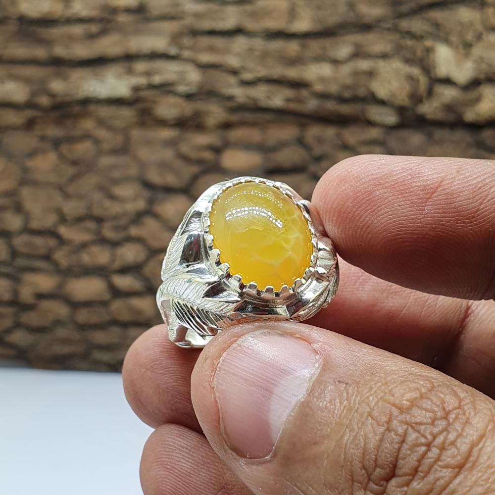 خاتم عقيق اندنوسي خليه النحل صياغه ورقه الشجر ابداع الشريف
