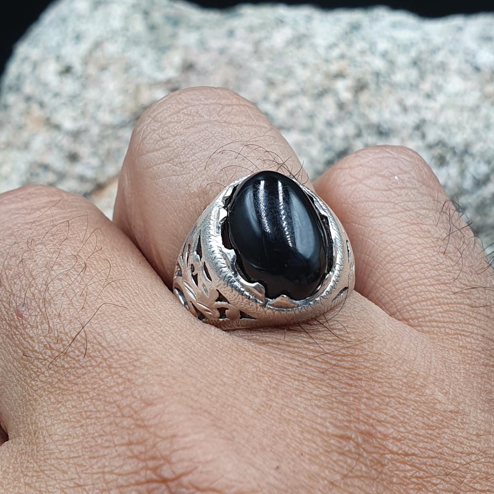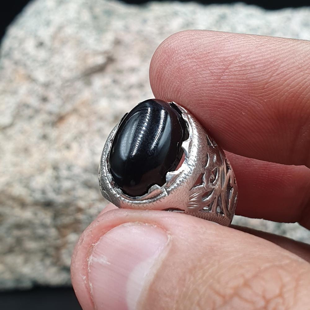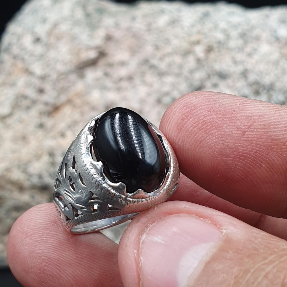 خاتم عقيق يماني اسود وديل حجازي ناعم