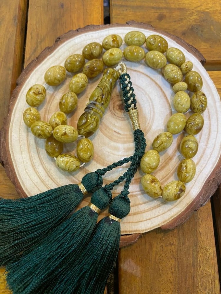سبحه33خرذه من تراب الكهرمان البولندي بريحه المستكه