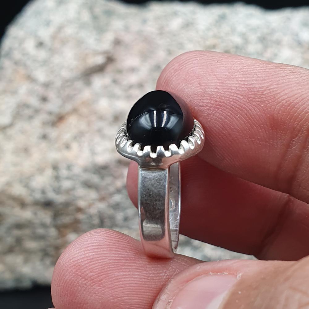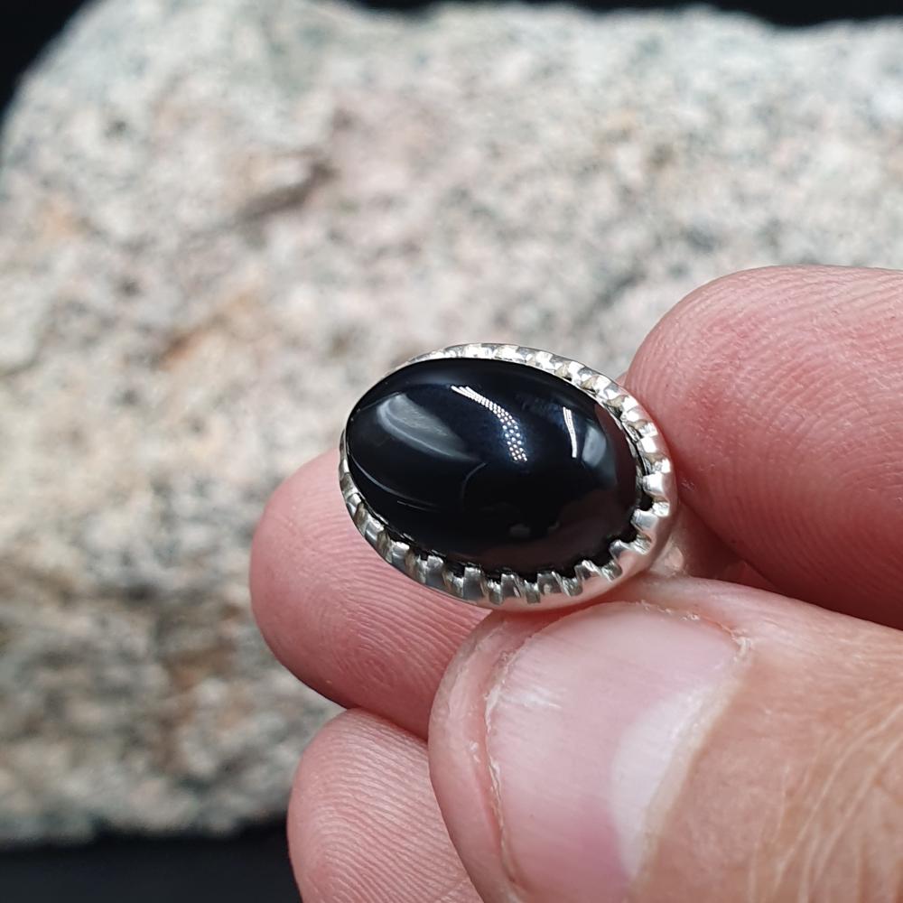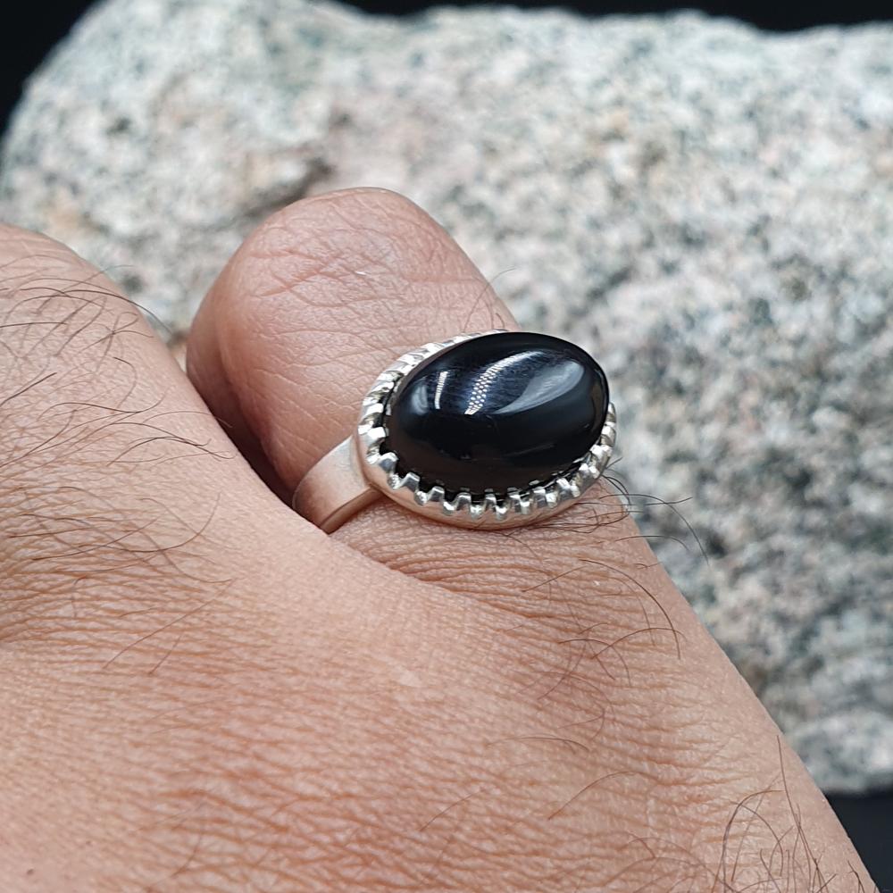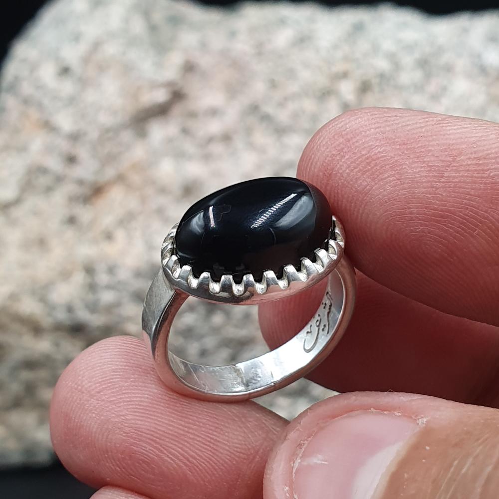 خاتم عقيق يماني اسود غامق موديل ملكي