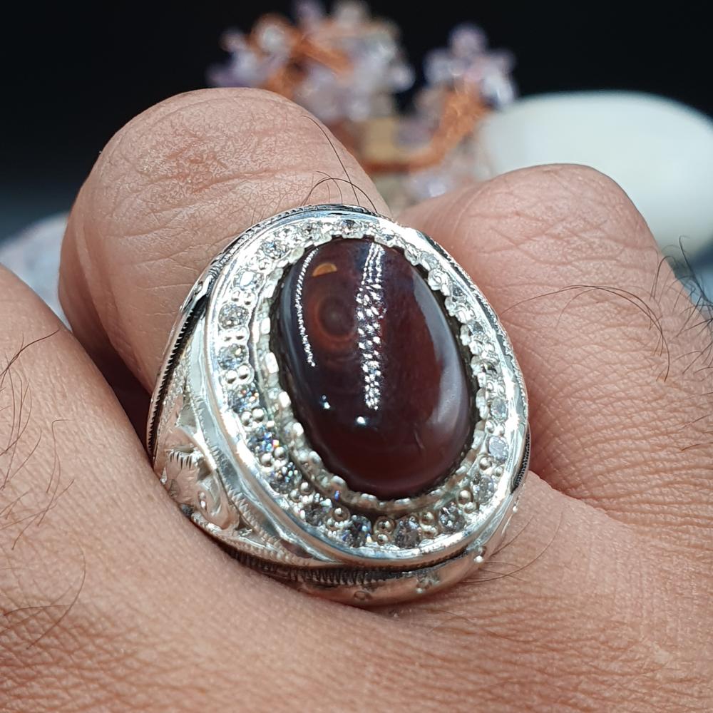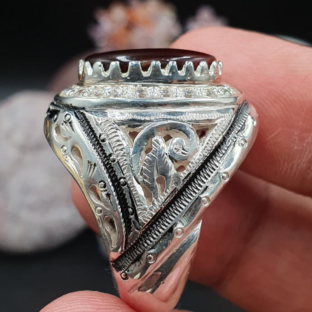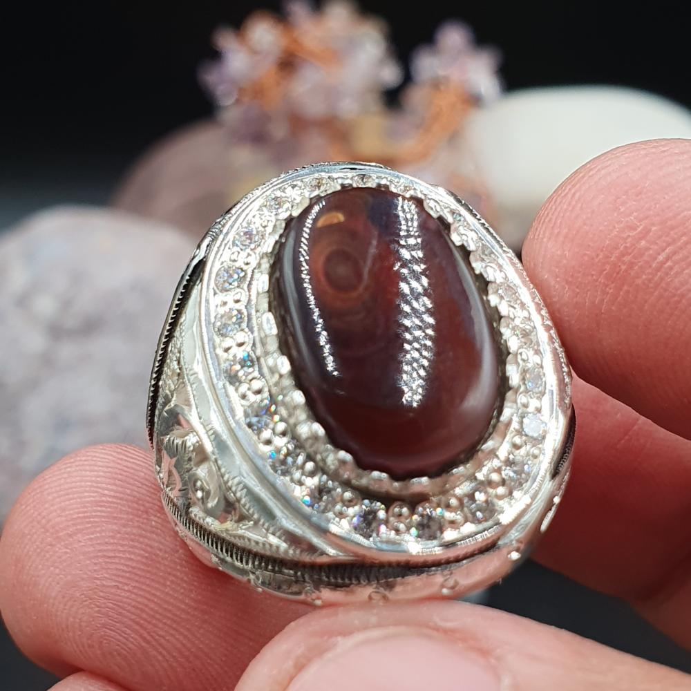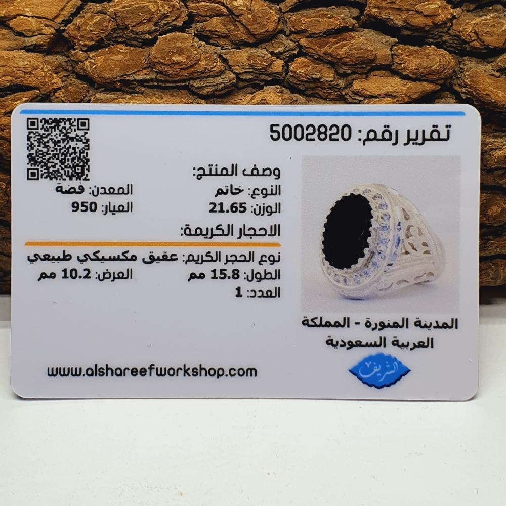 خاتم عقيق مكسيكي مرصع بالزركون السويسري مع بطاقه تعريف