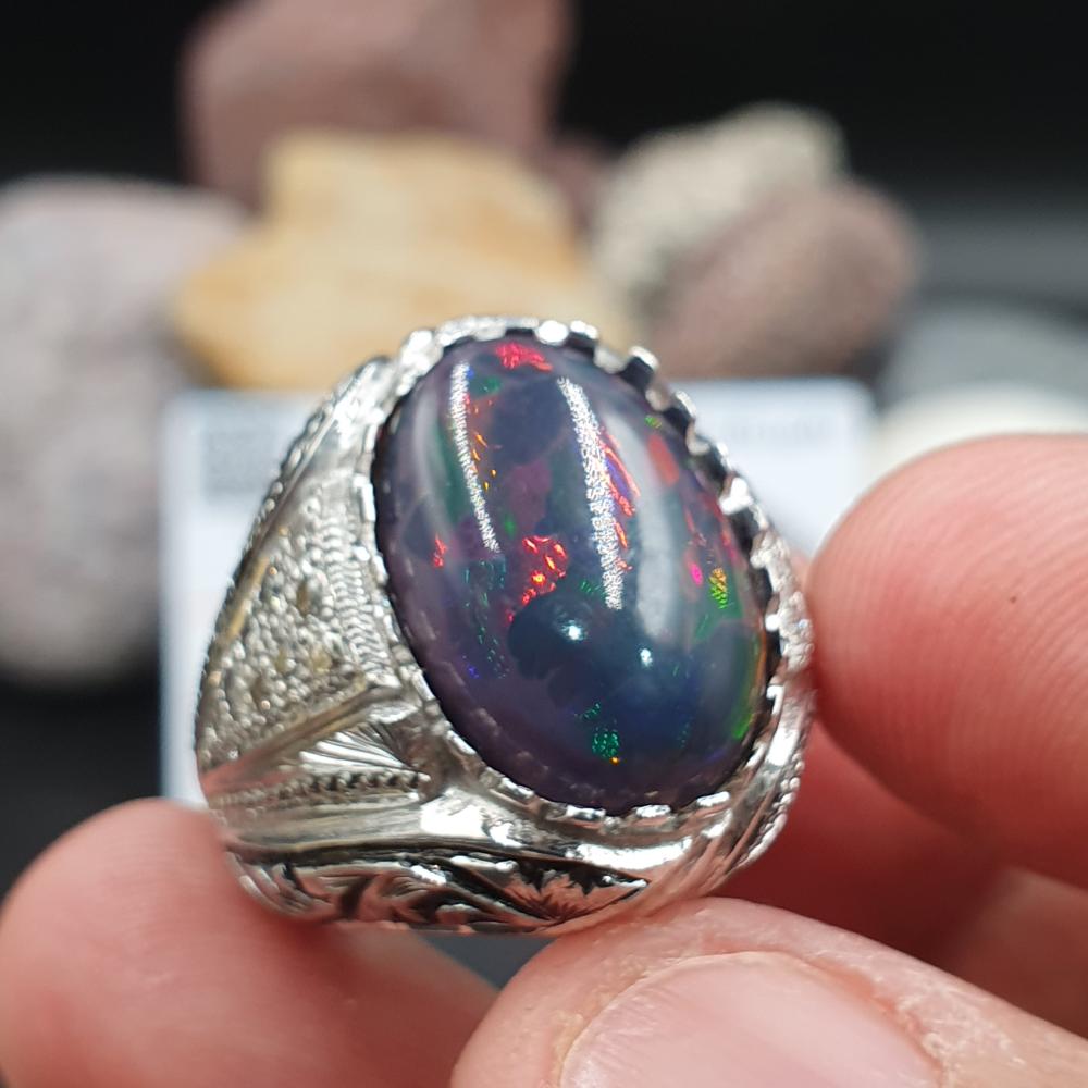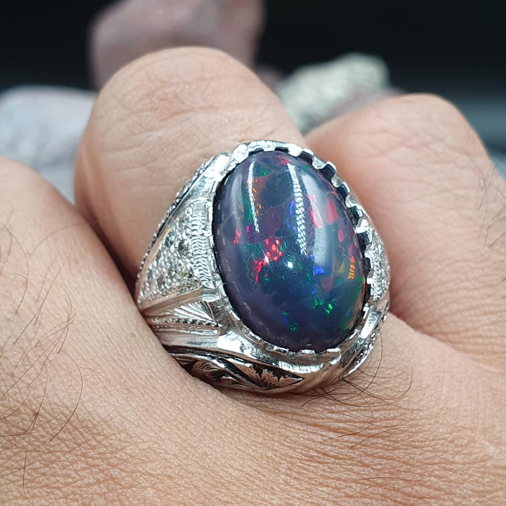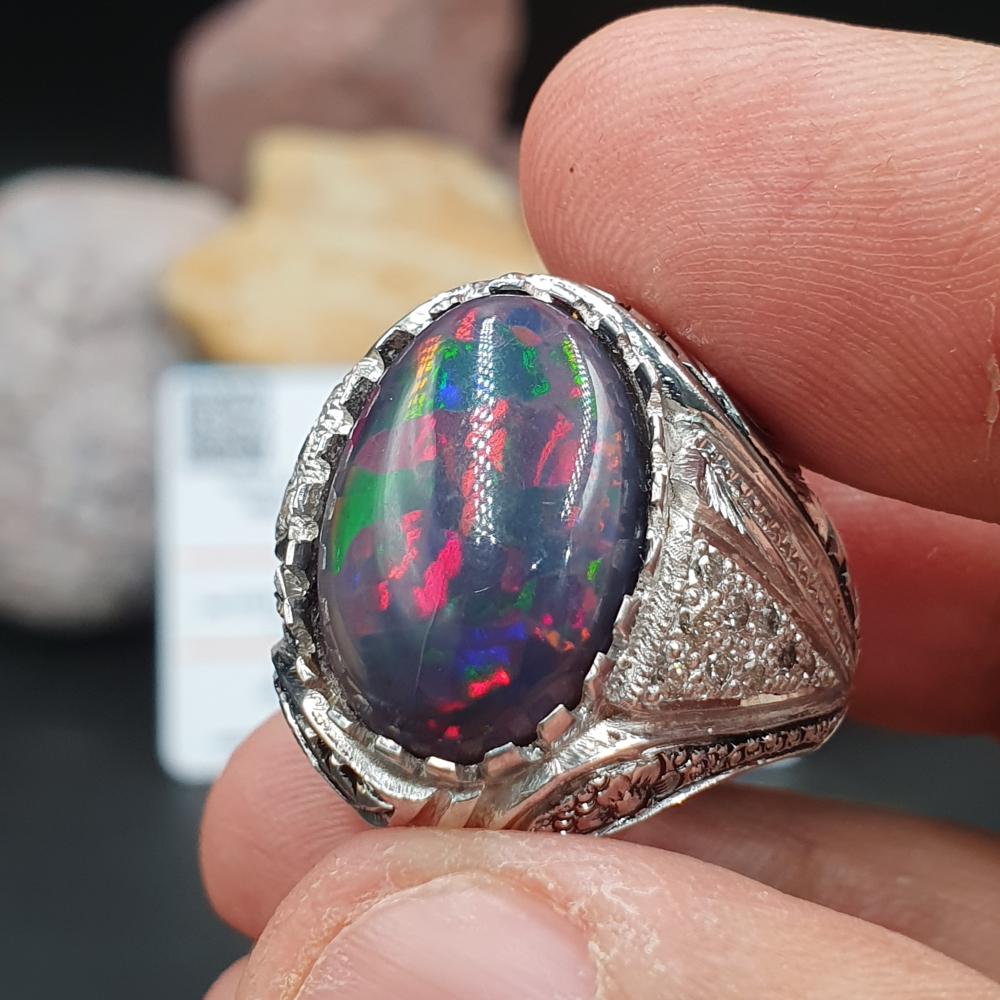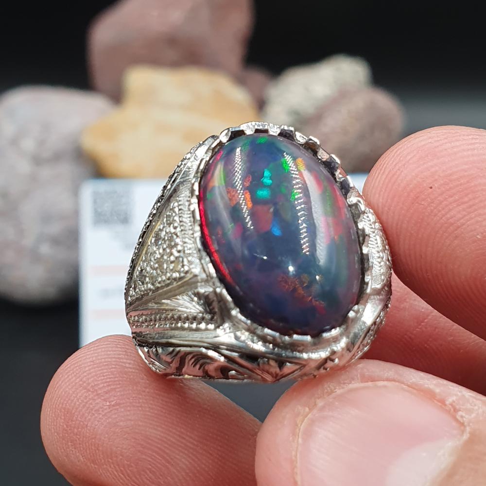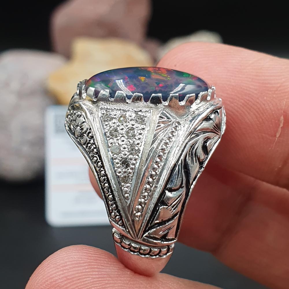خاتم اوبال فل فاير مرصع بالالماس الطبيعي لكس الشريف