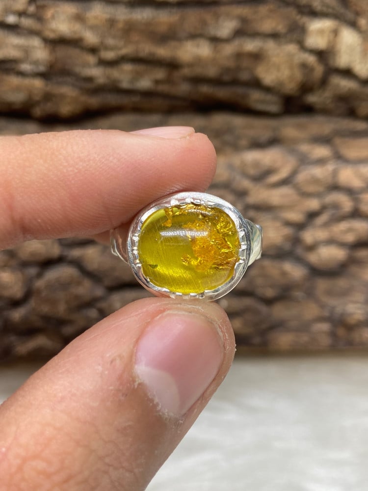 حجر كهرمان صياغة ملكية فضة عيار 925