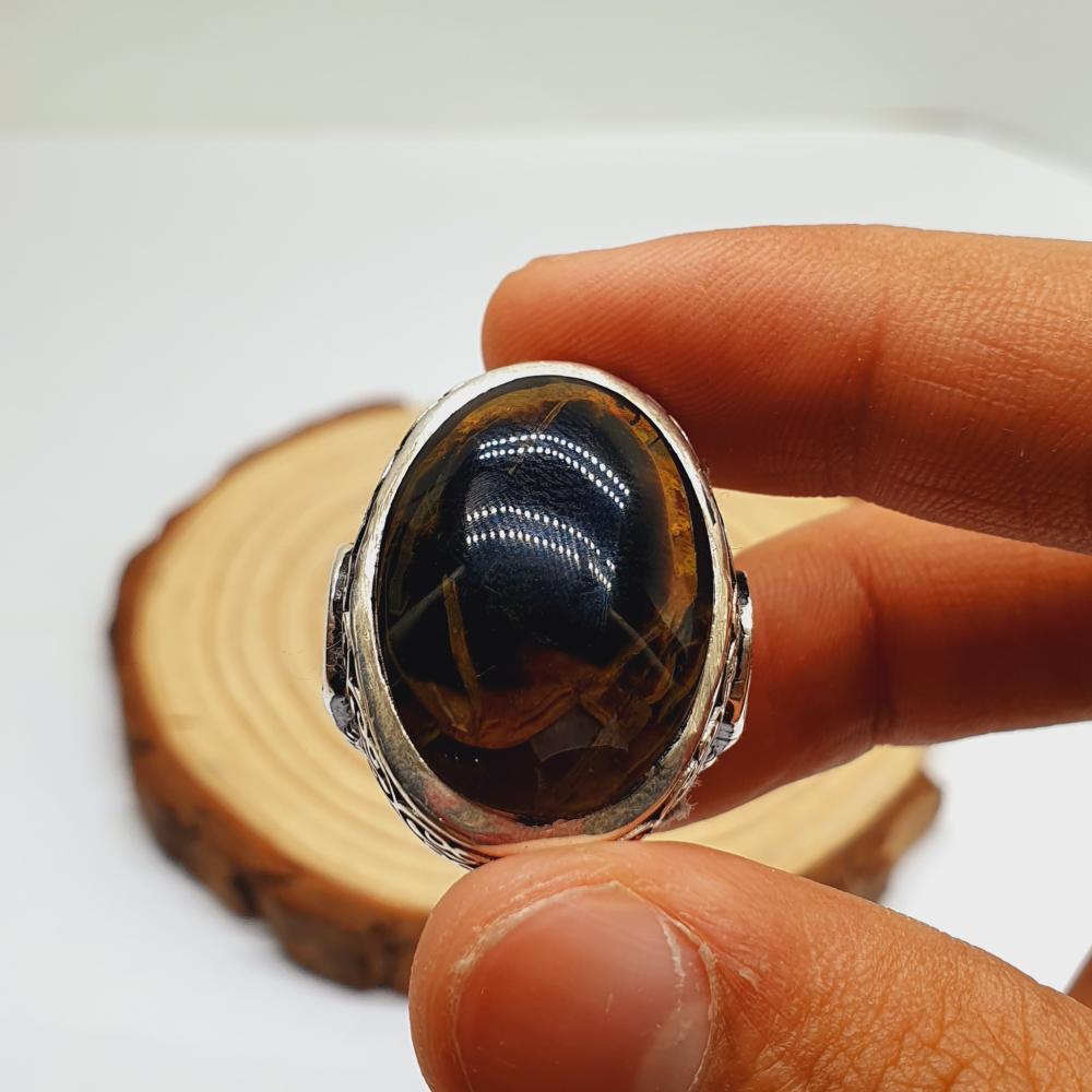 خاتم عقيق يماني زعفران طبيعي صياغه عارف