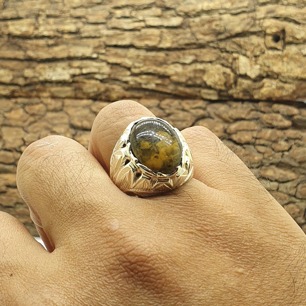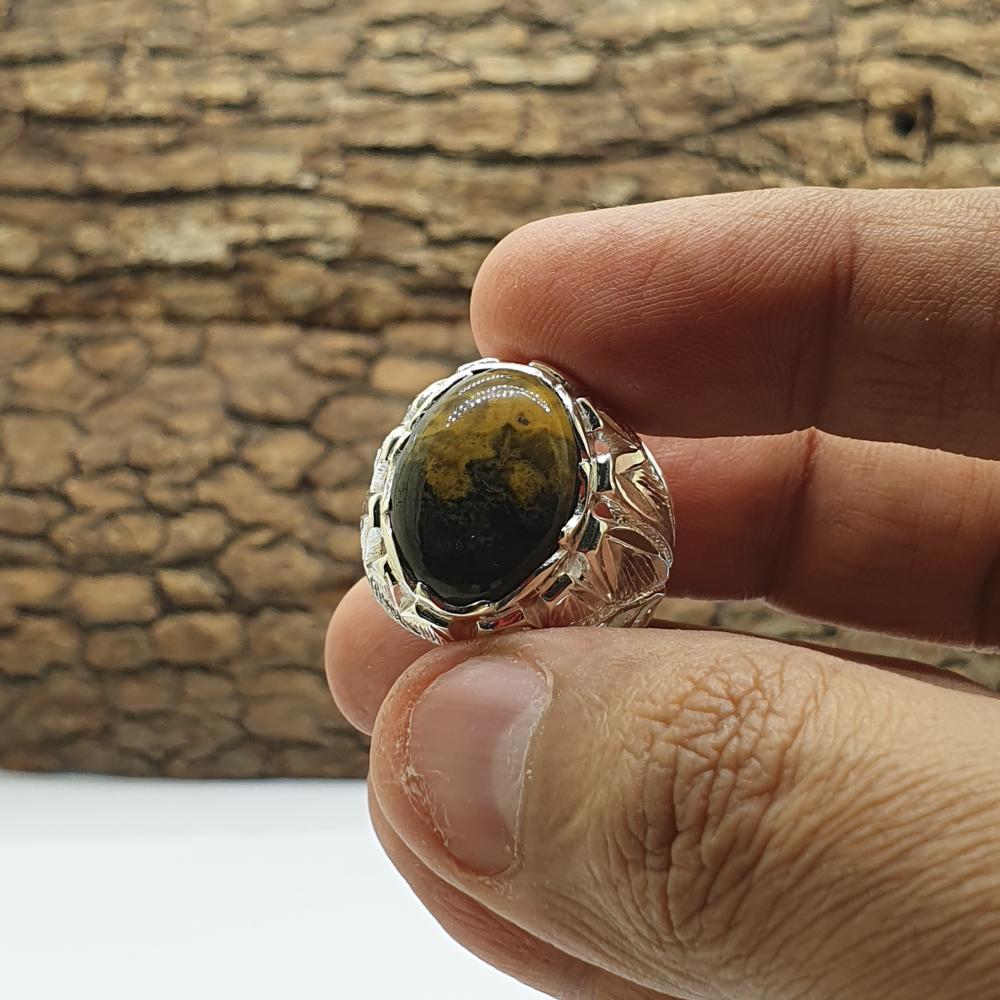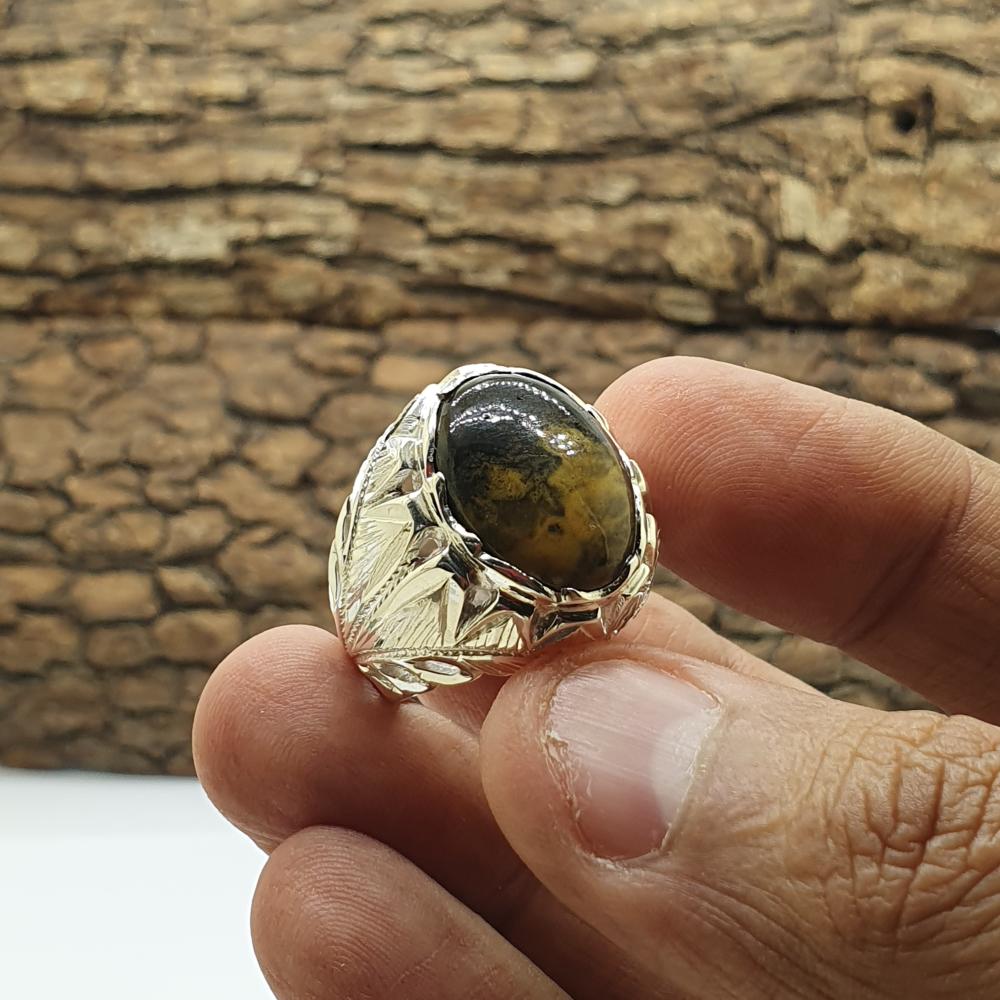خاتم عقيق يماني مصور جلد النمر صياغه حجازي
