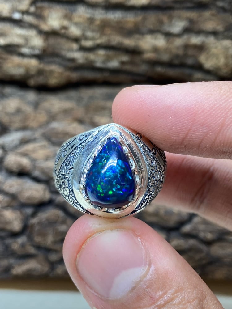 حجر اوبال فل فاير ازرق شكل دمعه صياغه محمدي
