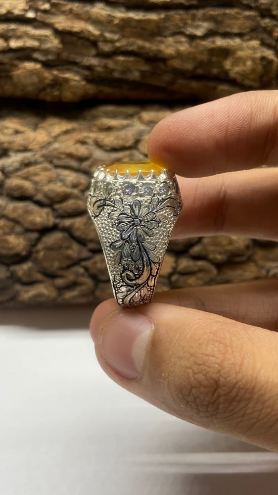 حجر الياقوت الاصفر المرصع بالموزنايت