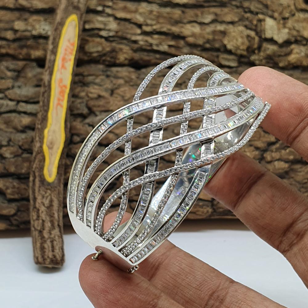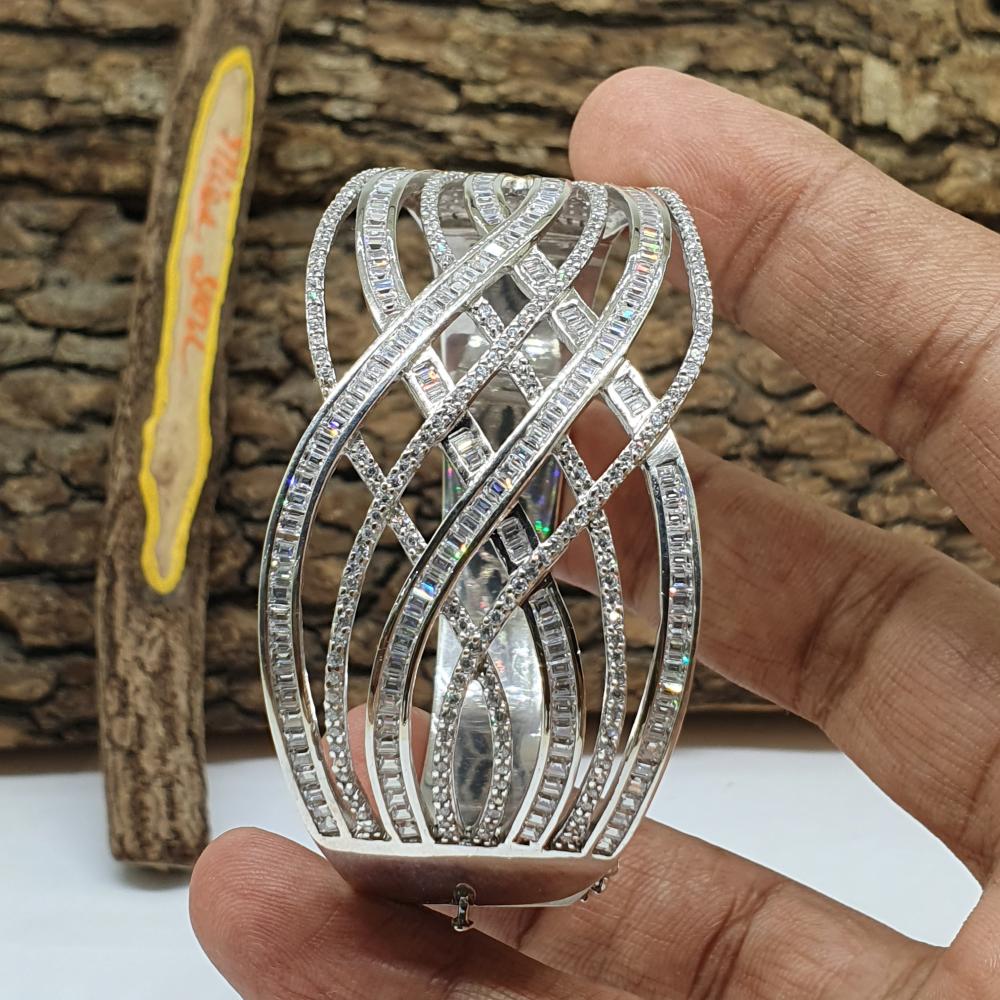 اسواره فضه عريضه شكل الحلزون مرصعه بالزركون السويسري